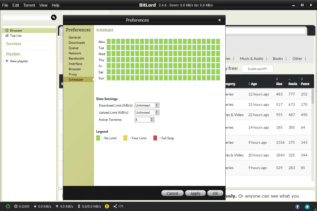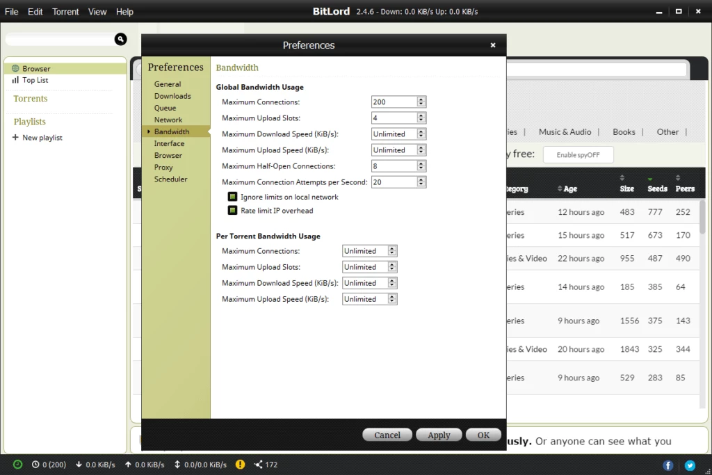 Il menu delle preferenze del programma aiuta a personalizzarne le funzionalità. È particolarmente utile per gli utenti esperti, che possono personalizzare completamente tutte le impostazioni per il download dei torrent.