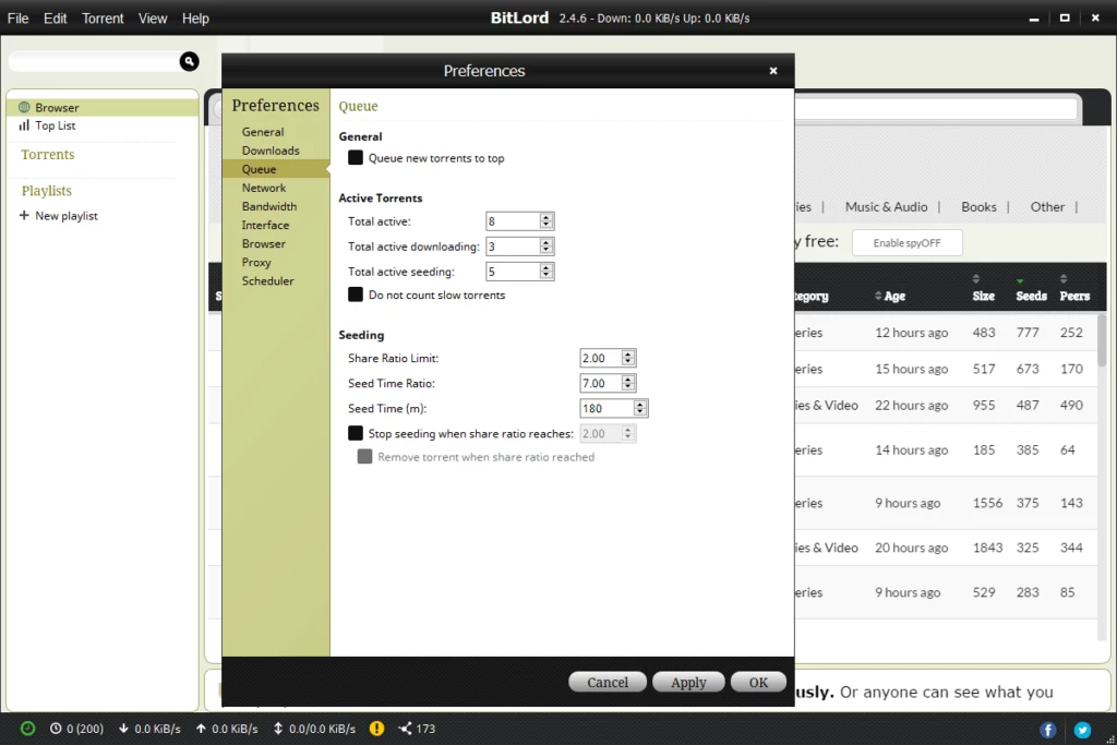 Un'interfaccia intuitiva con un ampio elenco di torrent ti aiuta a navigare tra file e categorie filtrati senza uscire dal programma. Anche l'inserimento di annunci pubblicitari semplifica la navigazione. BitLord avvia automaticamente il download del torrent con un solo clic sul link richiesto. Puoi anche aggiungere manualmente i file .torrent al programma.